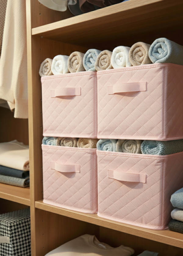 Raf Düzenleyici Pembe İnce Kumaş | 4'lü Set | Çelik Destekli, Katlanabilir Kıyafet Organizeri